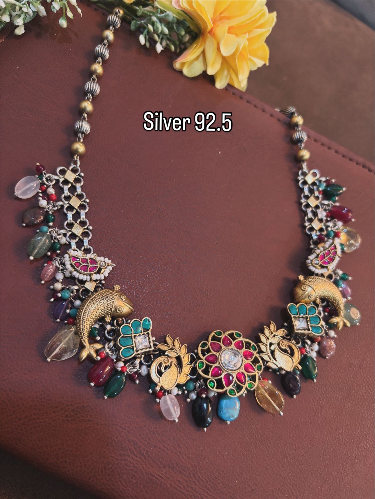 Silver 92.5 Oxidised Multicolor Stone Necklace